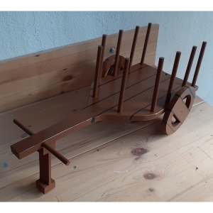 Carro de bois fabricado em madeira e pintado. 50 cm